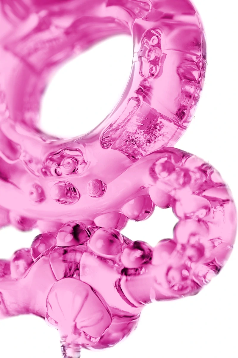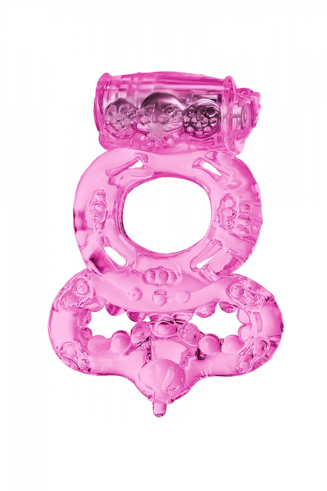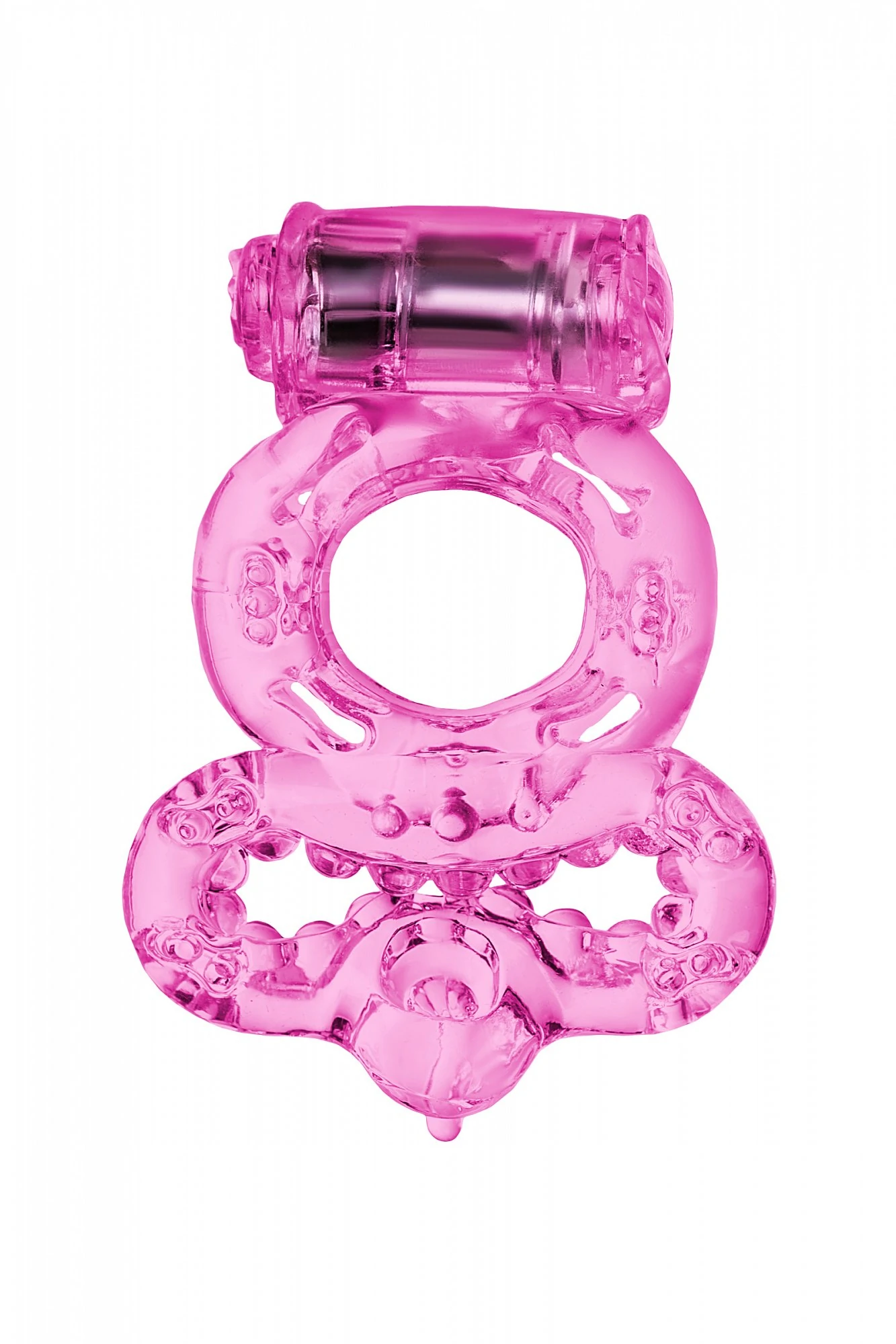 Кольцо эрекционное с вибрацией и еще одним кольцом в виде бантика. Цвет: розовый, прозрачный. Диаметр кольца 2,5 см (тянется).