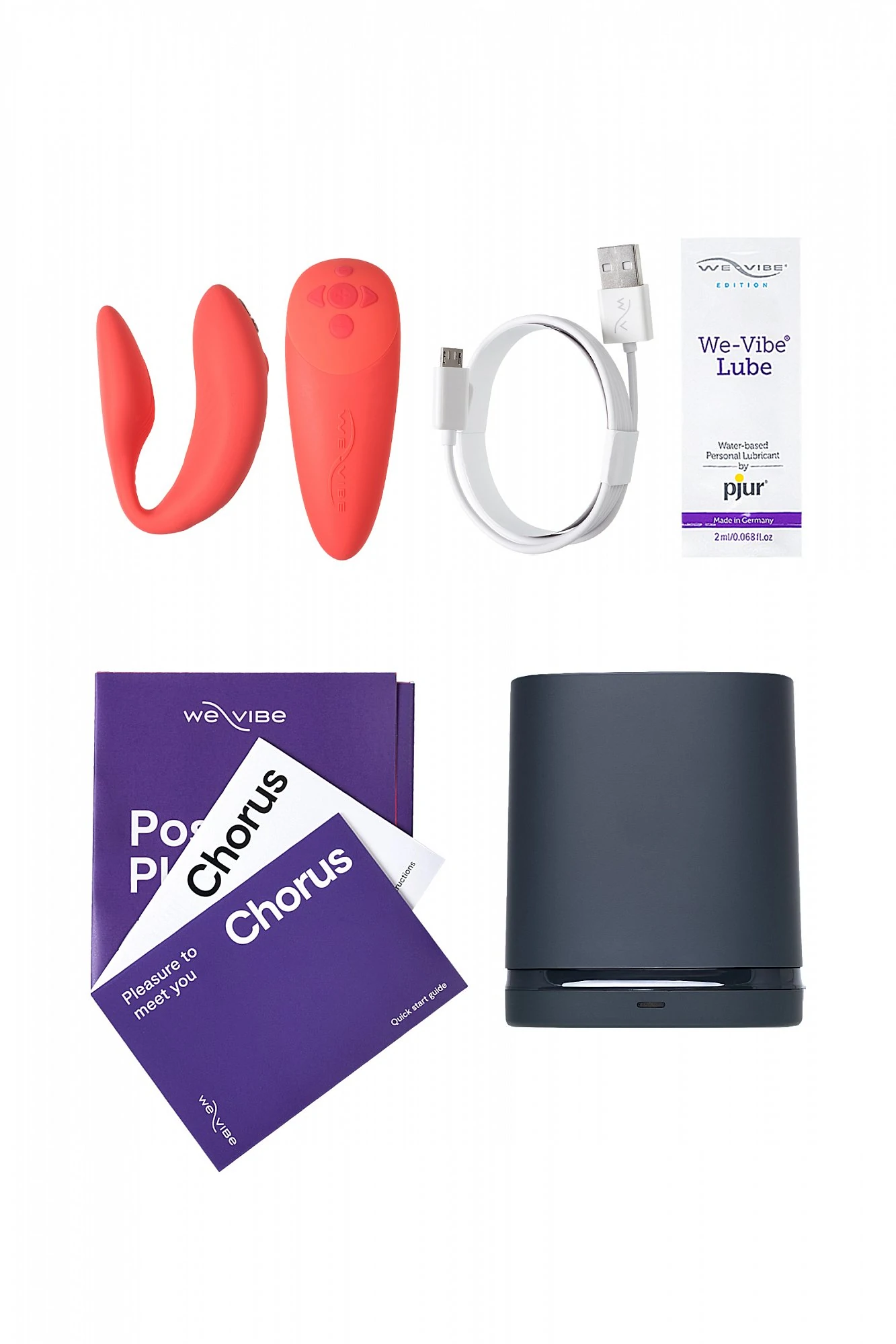 Вибратор для пар от We-Vibe с интуитивным управлением - забудьте о кнопках, просто сжимайте сенсорный пульт в ладони, чтобы увеличить силу вибрации. Chorus имеет 10 встроенных режимов и бесконечное количество настраиваемых - вы можете создать любой рисунок вибрации в приложении We-Connect и управлять вибратором с помощью смартфона. Chorus полностью водонепроницаемый, покрыт безопасным силиконом и изменит свою форму, чтобы стать удобным именно для вас. Для более комфортного использования рекомендуем приобрести смазку на водной основе и очищающий спрей Clear Toy 100 мл для обработки изделия.