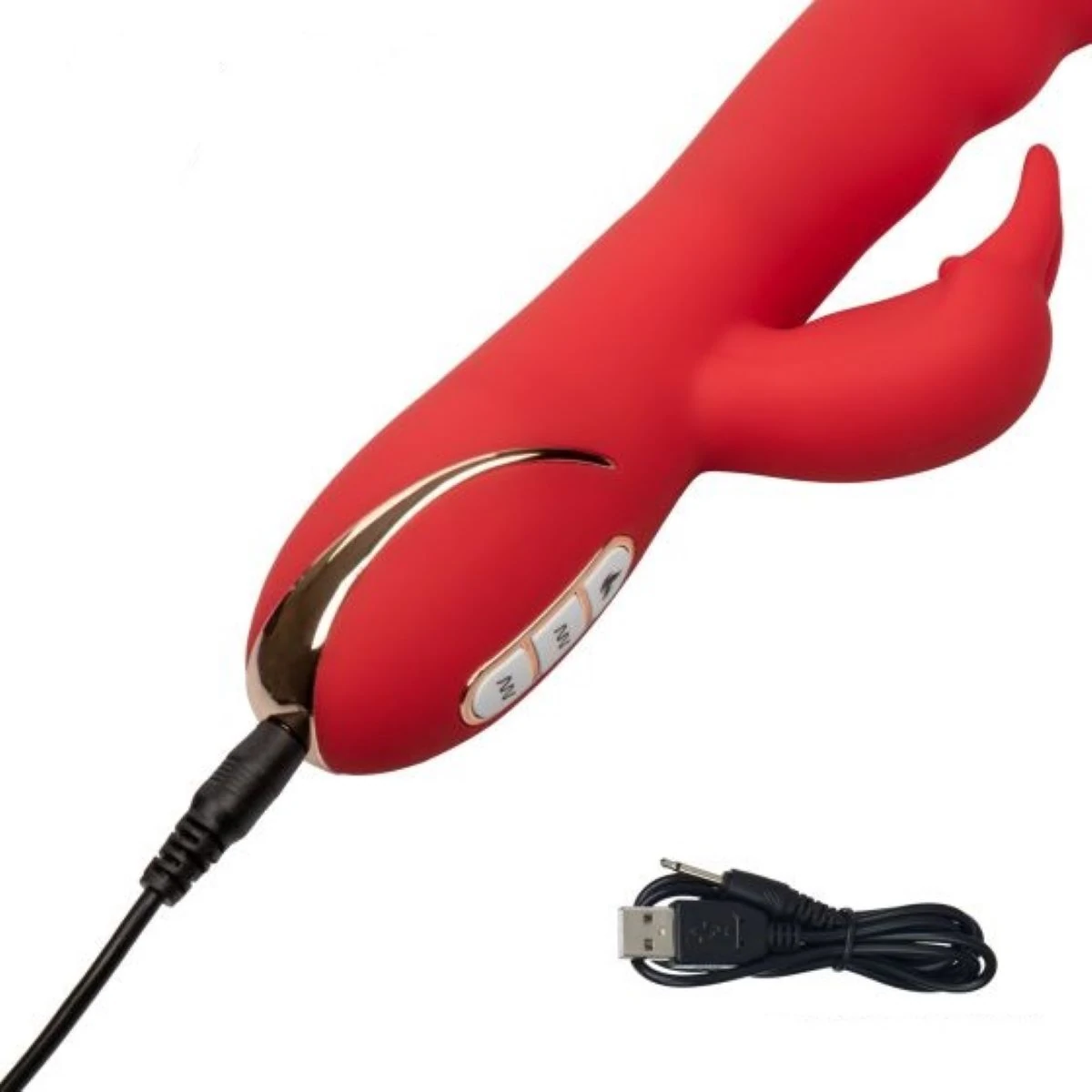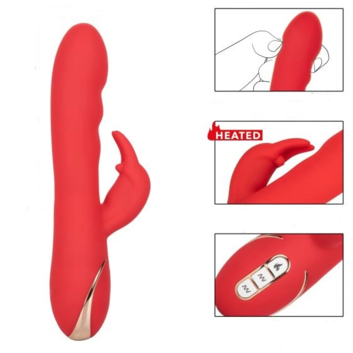 Heated Silicone Ultra-Soft Rabbit - роскошный вибромассажер кролик из двухслойного ультрамягкого материала класса Ultra-Soft, с ребристой головкой, клиторальным отростком с ушками и функцией нагрева до приятной температуры 45 градуса Цельсия. Особенностью является мягкий и нежный силикон высшего качества, который создаёт уникальные ощущения от прикосновения и особым образом передает телу вибрации. Два самостоятельных мотора обеспечивают отдельно управление 7 идеальными функциями вибрации. Трехкнопочная панель управления с LED-подсветкой позволяет вам управлять множеством вариантов вибрации. Чтобы включить или выключить, необходимо нажать и в течение трех секунд удерживать верхню кнопку питания. Вибромассажер заряжается через USB. Размер: общая длина 21,5 см, длина рабочей части 12.75 см, диаметр 3,75 см, длина клиторального отростка 5 см, диаметр 2,5 см. Цвет красный. Для более комфортного использования рекомендуем приобрести смазку на водной основе и очищающий спрей Clear Toy 100 мл для обработки изделия.