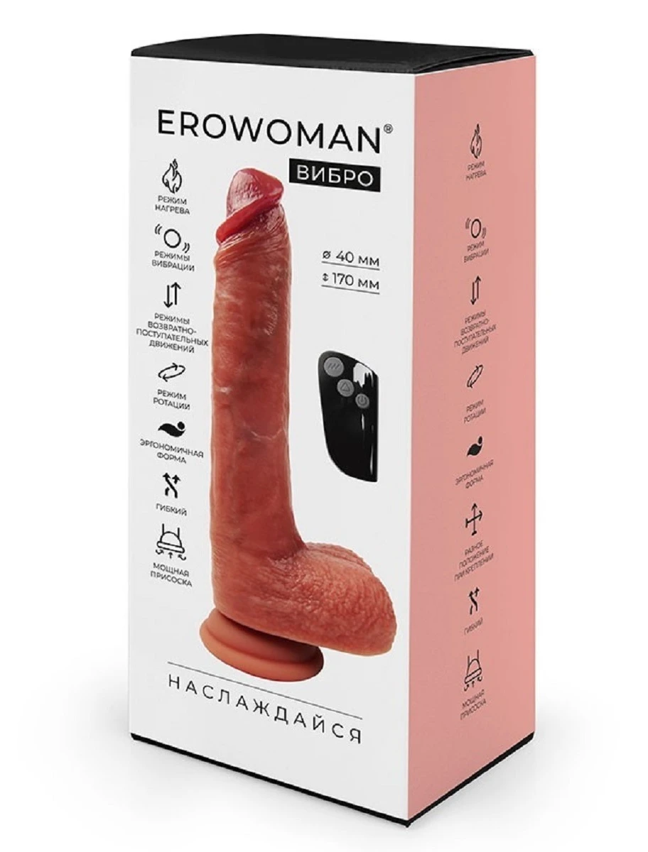 Роскошный вибромассажёр для разнообразных эротических удовольствий. Форма в виде пениса, естественный оттенок поверхности, ярко выраженные венки и складочки, хорошо очерченные головка и мошонка придают секс-игрушке максимальной реалистичности. Вибрация, разные режимы ротации и возвратно-поступательных движений, нагрев, мягкая головка, приятный на ощупь материал усиливают возбуждение и доводят до пика наслаждения. Присоска надёжно удерживает изделие на ровной горизонтальной или вертикальной поверхности. Для управления работой эротического аксессуара с помощью пульта, необходимо сначала нажать кнопку включения/выключения на его корпусе, а затем использовать кнопки на самом пульте. В комплект входит USB провод для зарядки изделия, дистанционный пульт, батарейка для пульта. Размер: общая длина 22 см, рабочая длина 17 см, диаметр 4 см. Цвет телесный. Для более комфортного использования рекомендуем приобрести смазку на водной основе и очищающий спрей Clear Toy 100 мл для обработки изделия.