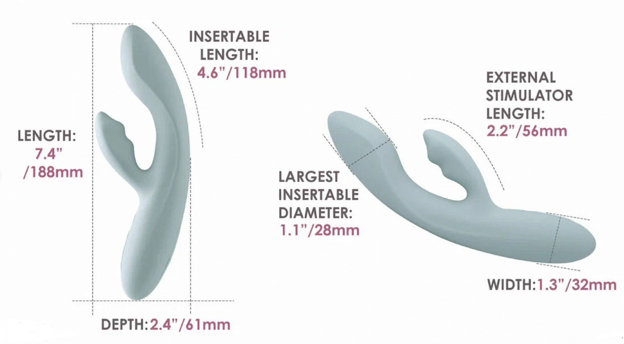Chika имеет мягкую головку, которая прижимается к точке G, где бы она ни была, и независимый стимулятор клитора, все они изготовлены из мягкого жидкого силикона. Попробуйте вибрацию в 5 режимах, 5 уровнях интенсивности (25 вариантов и больше) и бонусном интеллектуальном режиме, который имитирует ритм секса в течение 4 минут.
