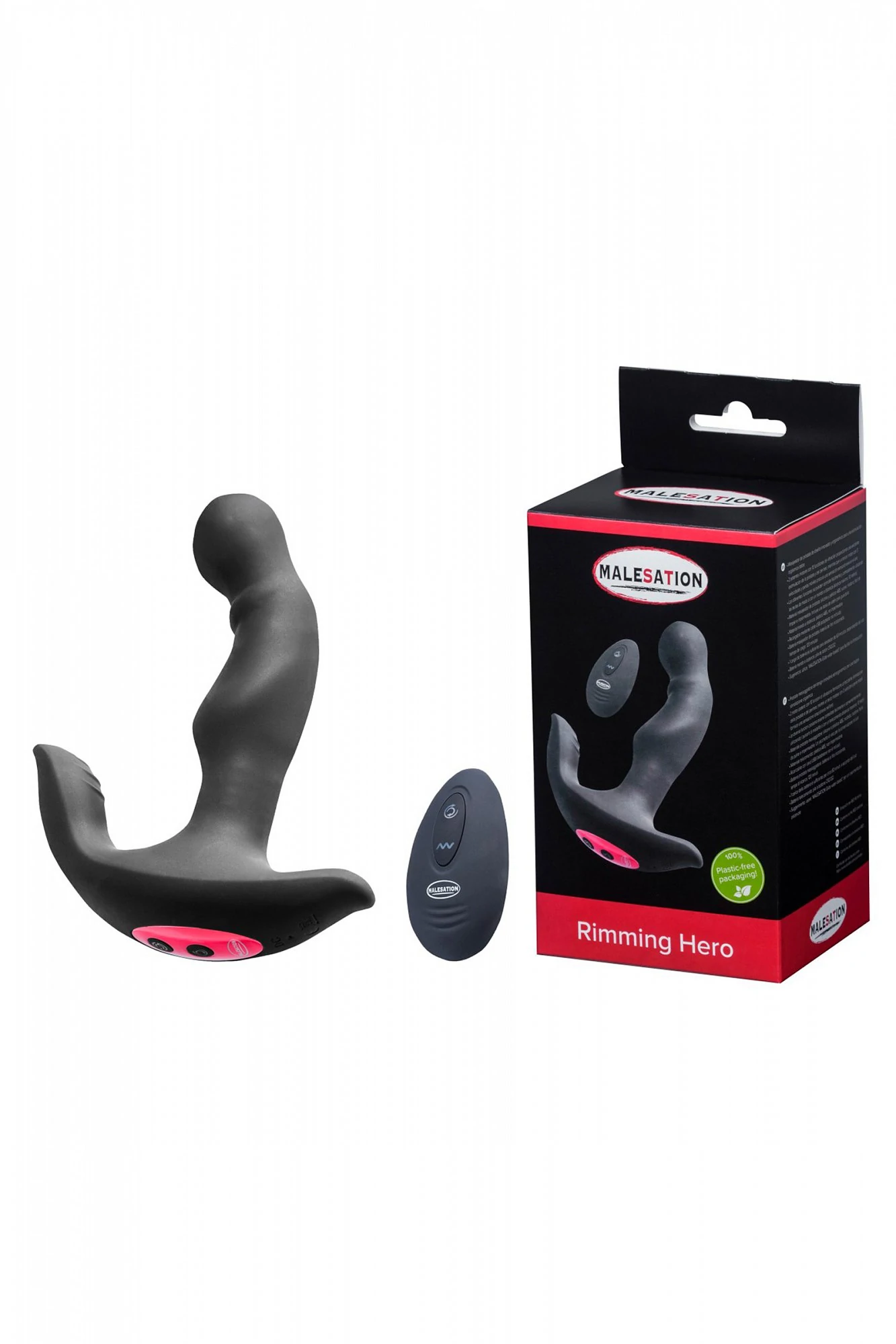 Malesation Rimming Hero инновационный стимулятор простаты, созданный для двойной оргазмической стимуляции. Сочетая в себе мощь и утонченность, этот массажер предлагает невероятное удовольствие с помощью 2 мощных моторов и 10 вибрационных функций. Их задача доставить яркую стимуляцию простаты и промежности, одновременно с воздействием вращающихся шариков в головке втулки, которые имеют 3 скорости вращения для уникальных ощущений в анальной зоне. Эргономичный изгиб втулки позволяет точно воздействовать на простату, а удлиненный стоппер передает вибрацию на промежность и мошонку, добавляя дополнительное возбуждение. Округлый кончик массажера облегчает введение, а мягкий и приятный на ощупь силикон обеспечивает безопасность использования. Malesation Rimming Hero не содержит фталатов, не имеет запаха и прост в уходе. Для более комфортного использования рекомендуем приобрести смазку на водной основе и очищающий спрей Clear Toy 100 мл для обработки изделия.