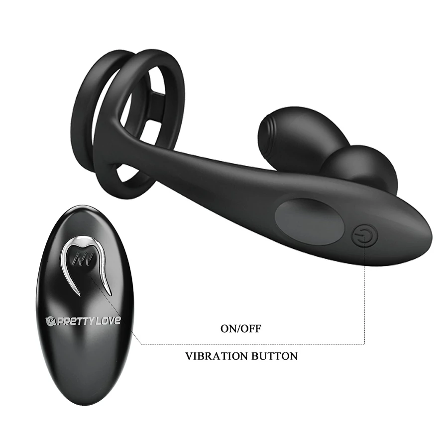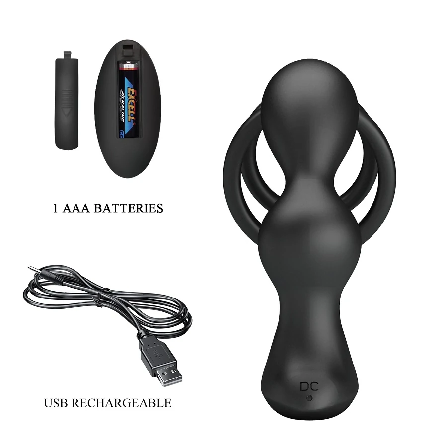 Стимулятор простаты Marshall c эрекционным кольцом. Характеристики: Усиливает эрекцию и удовольствие. Встроенная вибрирующая анальная пробка. Имеет 12 режимов вибрации. USB перезаряжаемый. Источник питания пульта управления: 1 батарея AAA и зарядка игрушки через USB. Материал: силикон. Вес: 96 г. Размер: длина 13,5 см, диаметр 2,7 см, диаметр колец 4,7 см и 3,8 см. Цвет: черный. Для более комфортного использования рекомендуем приобрести смазку на водной основе и очищающий спрей Clear Toy 100 мл для обработки изделия.