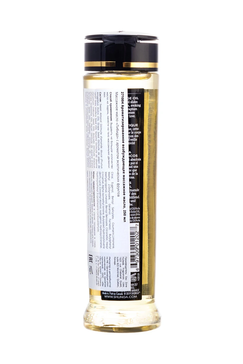 Идеально подходящее для того, чтобы сделать или насладиться расслабляющим массажом, вперемежку с обволакивающими обольстительными ласками, это натуральное масло с упоительными ароматами, легко скользит по коже, не оставляя жирных ощущений. В отличие от большей части средств SHUNGA, ароматизированных вкусовыми ароматами, запах массажному маслу придают эфирные масла и ароматы, что делает его несъедобным. Мягкость и шелковистость этого масла с приятным скользящим эффектом на коже вызывает ощущение полного восторга. Сексуальное желание нарастает, и вы готовы к любви. Получите взаимное удовольствие от чувственного эротического массажа с использованием нашей эксклюзивной смеси масел холодного отжима, тщательно отобранных за свои стимулирующие и придающие энергию свойства. Применение: налейте небольшое количество на ладонь и разогрейте масло в ладонях, чтобы оно приобрело температуру тела. При желании вы можете нагреть масло в горячей воде для более горячего массажа. Для полного массажа тела. Объем: 240мл.