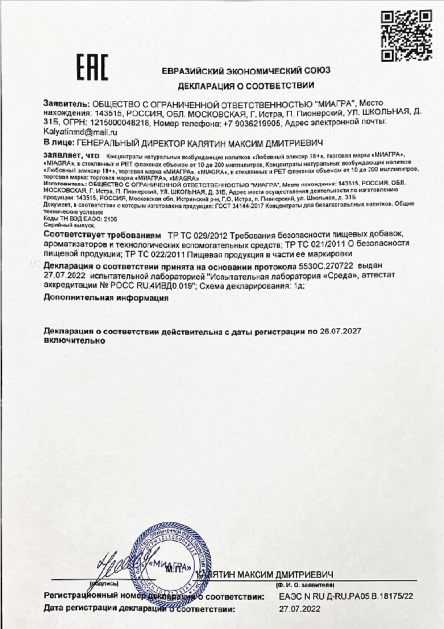 Иногда для жаркого секса не хватает лишь пары капель любовного эликсира. Это легендарный продукт, в состав которого, входят ингредиенты, издавна славившиеся как лучший стимулятор сексуального желания. Эликсир любви обогащен афродизиаками и экстрактами, которые стимулируют ваши желания и вызывают жажду секса. Эликсир поможет паре достичь невероятных сексуальных результатов – значительно повышает возбудимость обоих партнеров, ночь с применением этих капель будет незабываемой! Способ применения: 10-15 капель растворить в жидкости за 10-20 минут до секса. Эликсир не является лекарственным средством, возможны побочные действия.