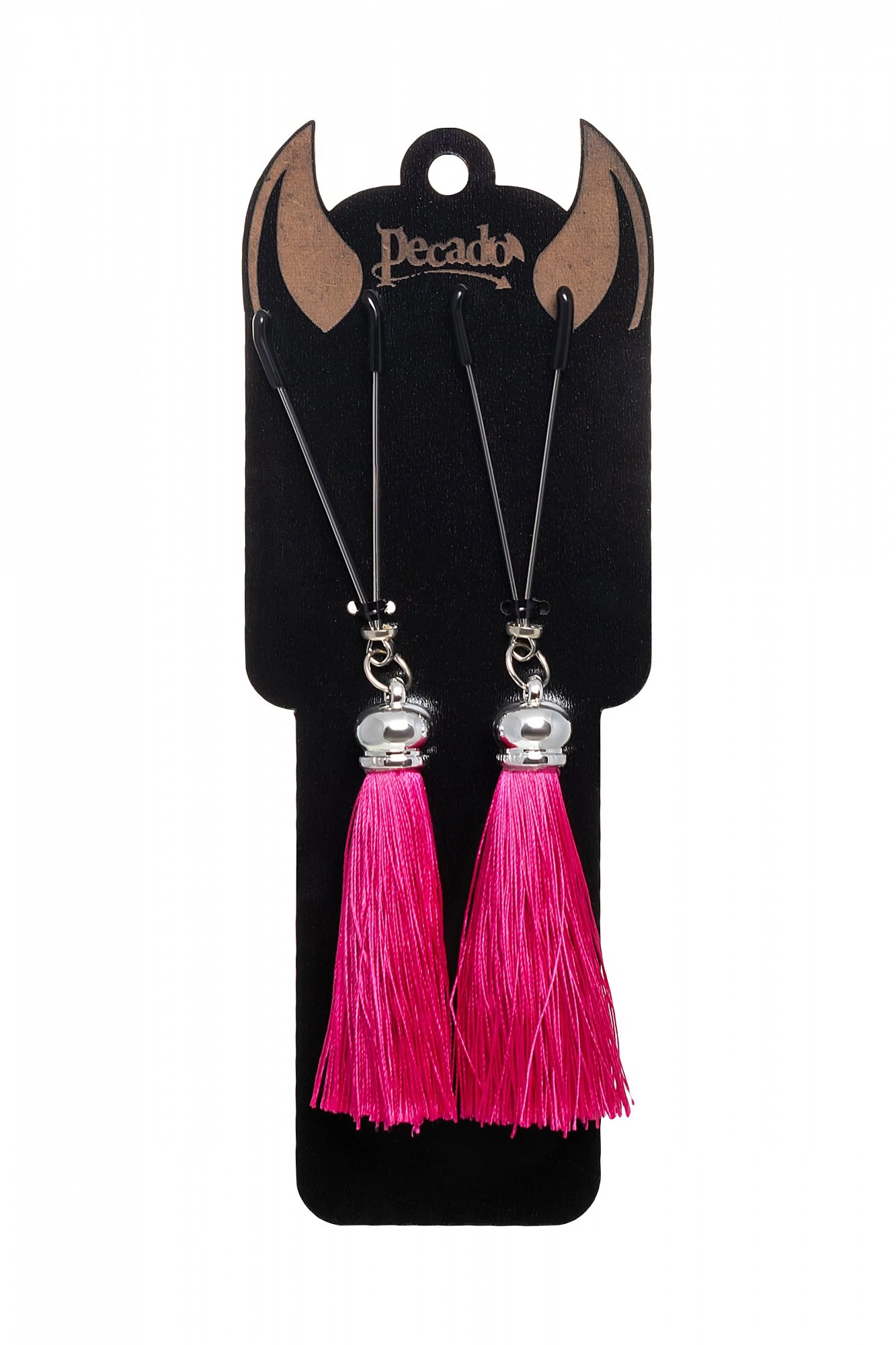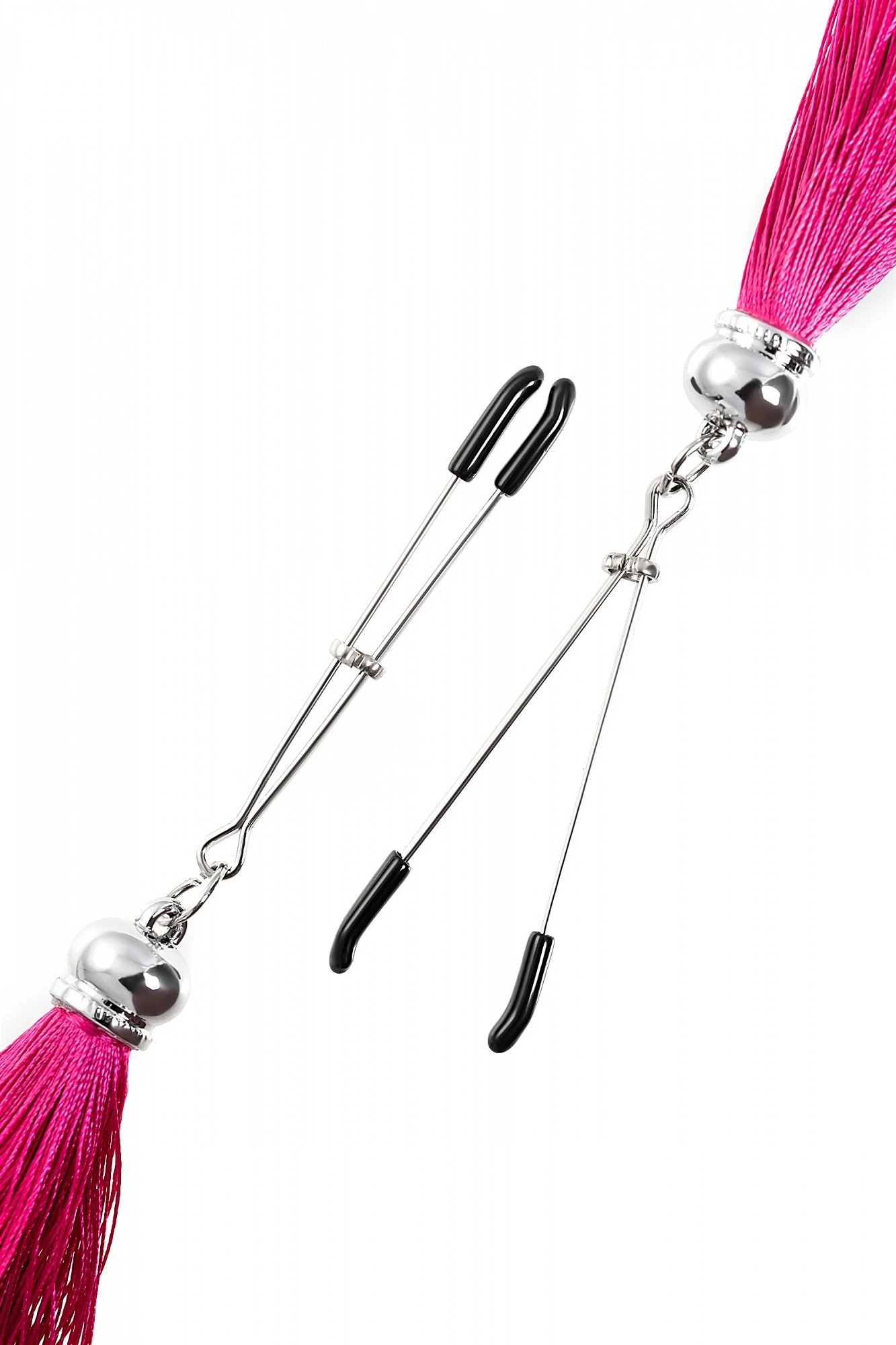 Попробуйте новые, дерзкие ощущения глубокого наслаждения! Зажимы-вилки от Pecado гарантируют смешение ярких чувств от тактильного контакта с нежной кожей сосков. Зажимы выполнены из высококачественных материалов. Металлическая часть компактная, приятная на ощупь. На концах черные резиновые наконечники, для безопасного воздействия на эрогенные зоны. Интенсивность сжатия аксессуара регулируется миниатюрными колечками. В зависимости от личных предпочтений и сценария игры, можно выбрать легкое пощипывание, или сильное сдавливание. Бахрома из натурального шелка, в насыщенном цвете фуксия, добавляет манящую красоту смелому атрибуту. При каждом соблазнительном покачивании груди, кисточки движутся в пикантном ритме. Также подходит для стимуляции и возбуждении в области половых губ и клитора.