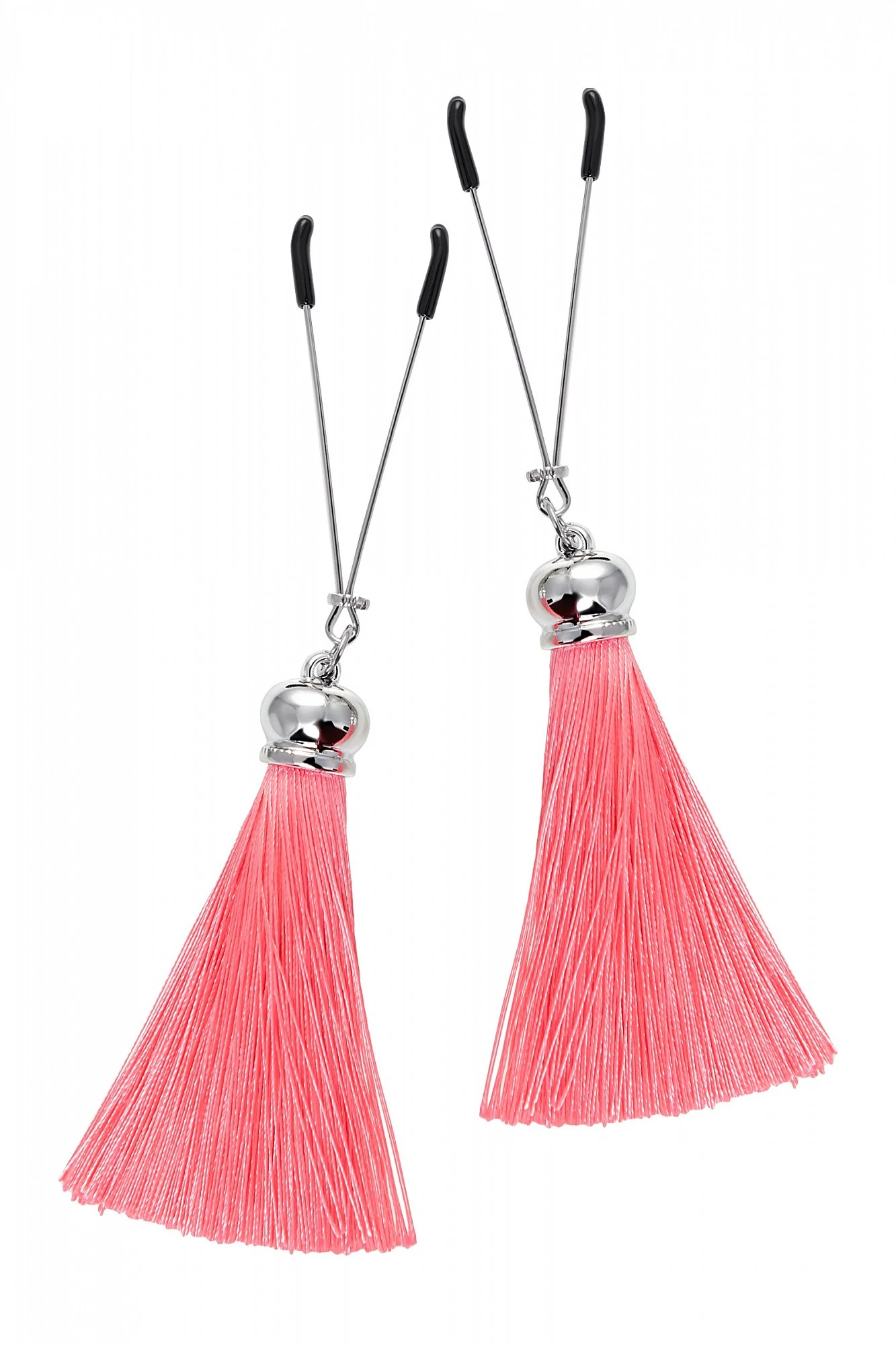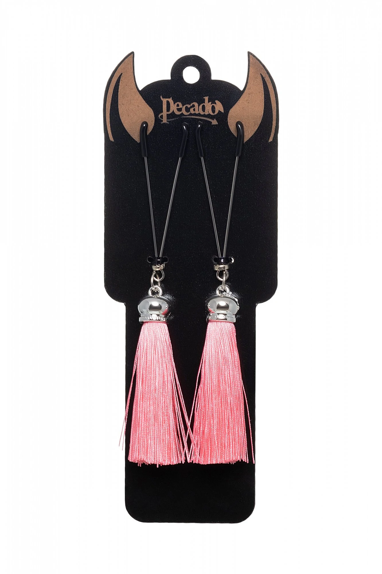 Попробуйте новые, дерзкие ощущения глубокого наслаждения! Зажимы-вилки от Pecado гарантируют смешение ярких чувств от тактильного контакта с нежной кожей сосков. Зажимы выполнены из высококачественных материалов. Металлическая часть компактная, приятная на ощупь. На концах черные резиновые наконечники, для безопасного воздействия на эрогенные зоны. Интенсивность сжатия аксессуара регулируется миниатюрными колечками. В зависимости от личных предпочтений и сценария игры, можно выбрать легкое пощипывание, или сильное сдавливание. Бахрома из натурального шелка, в насыщенном озовом цвете, добавляет манящую красоту смелому атрибуту. При каждом соблазнительном покачивании груди, кисточки движутся в пикантном ритме. Также подходит для стимуляции и возбуждении в области половых губ и клитора.