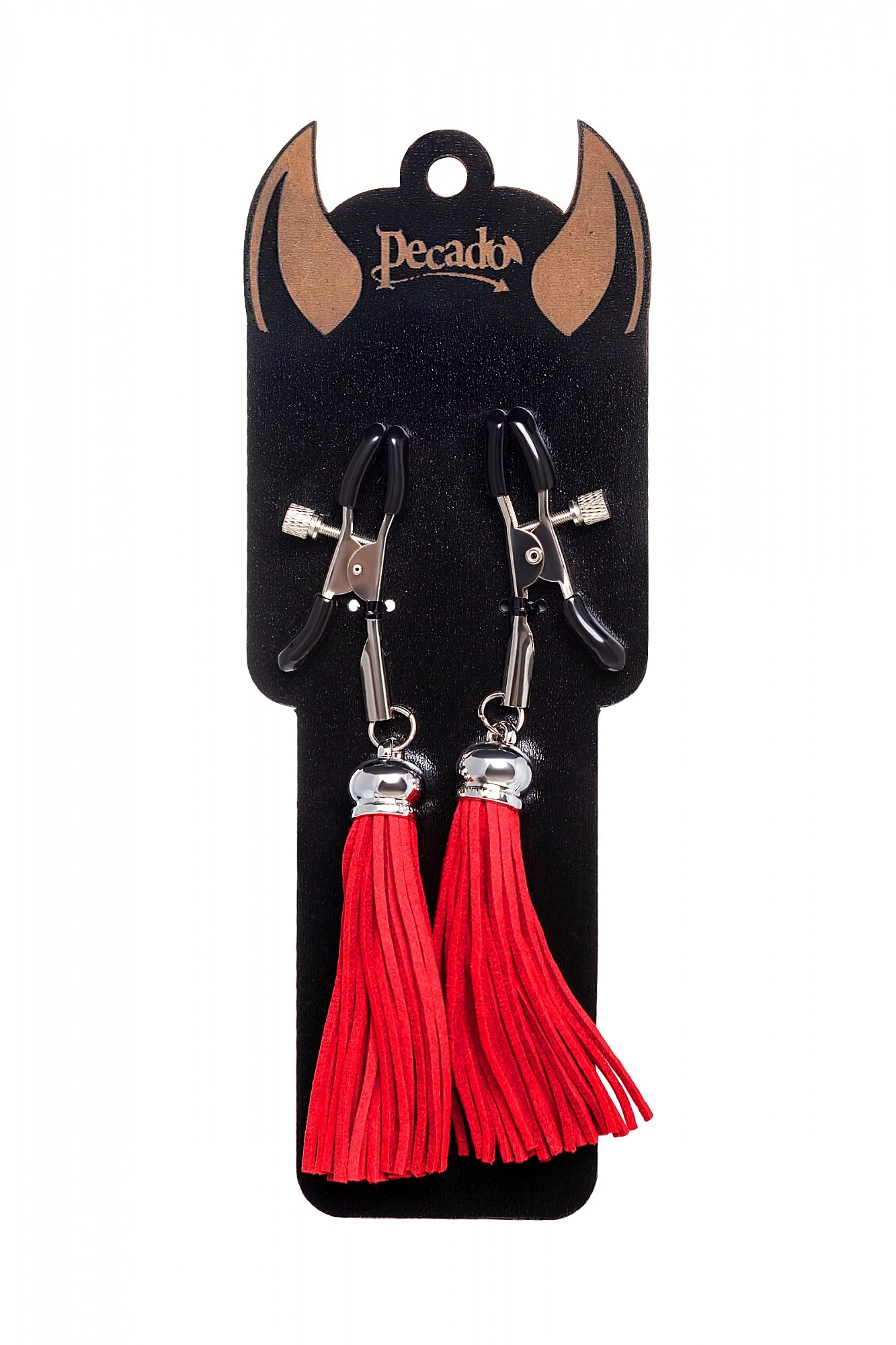 Хотите усилить ощущения от страстных игр с партнером? Увеличить степень возбуждения до невозможного можно с помощью зажимов-прищепок ручной работы от Рecado. Невероятно сексуальный аксессуар пробудит фантазию и повысит чувственность эротических зон. Мягкие резиновые накладки оберегают соски от повреждений. Металлический винт регулирует степень сжатия зажимов: от нежно-приятного до сильно-грубого. На концах черные резиновые наконечники, для безопасного воздействия на нежные участки тела. Компактный размер удобно вмещается как в женскую, так и в мужскую руку. Кисточки из натуральной замши не только визуально украшают эротический атрибут, но и еще утяжеляют его. Для самых смелых и искушенных любителей доминировать и подчиняться.