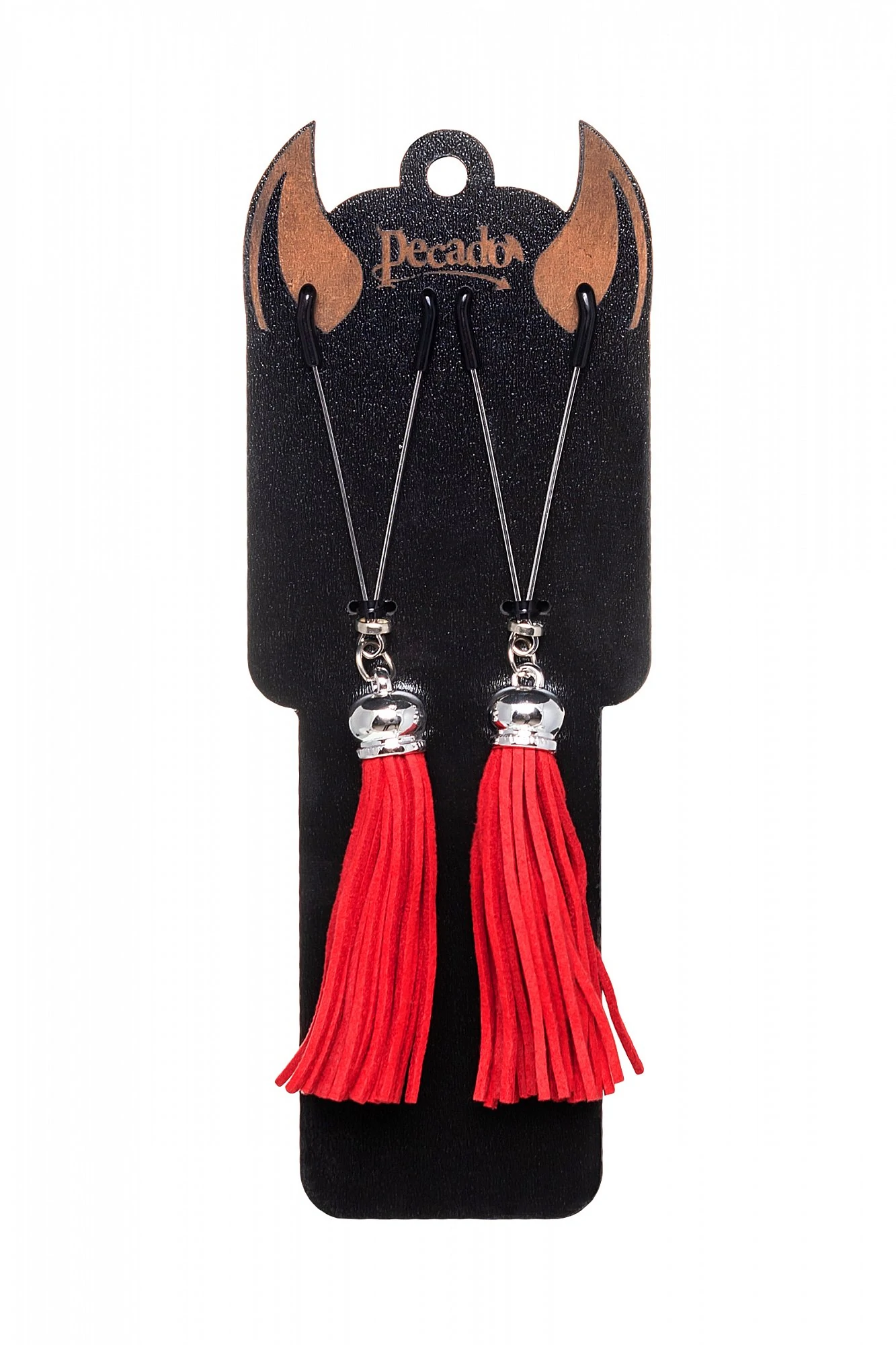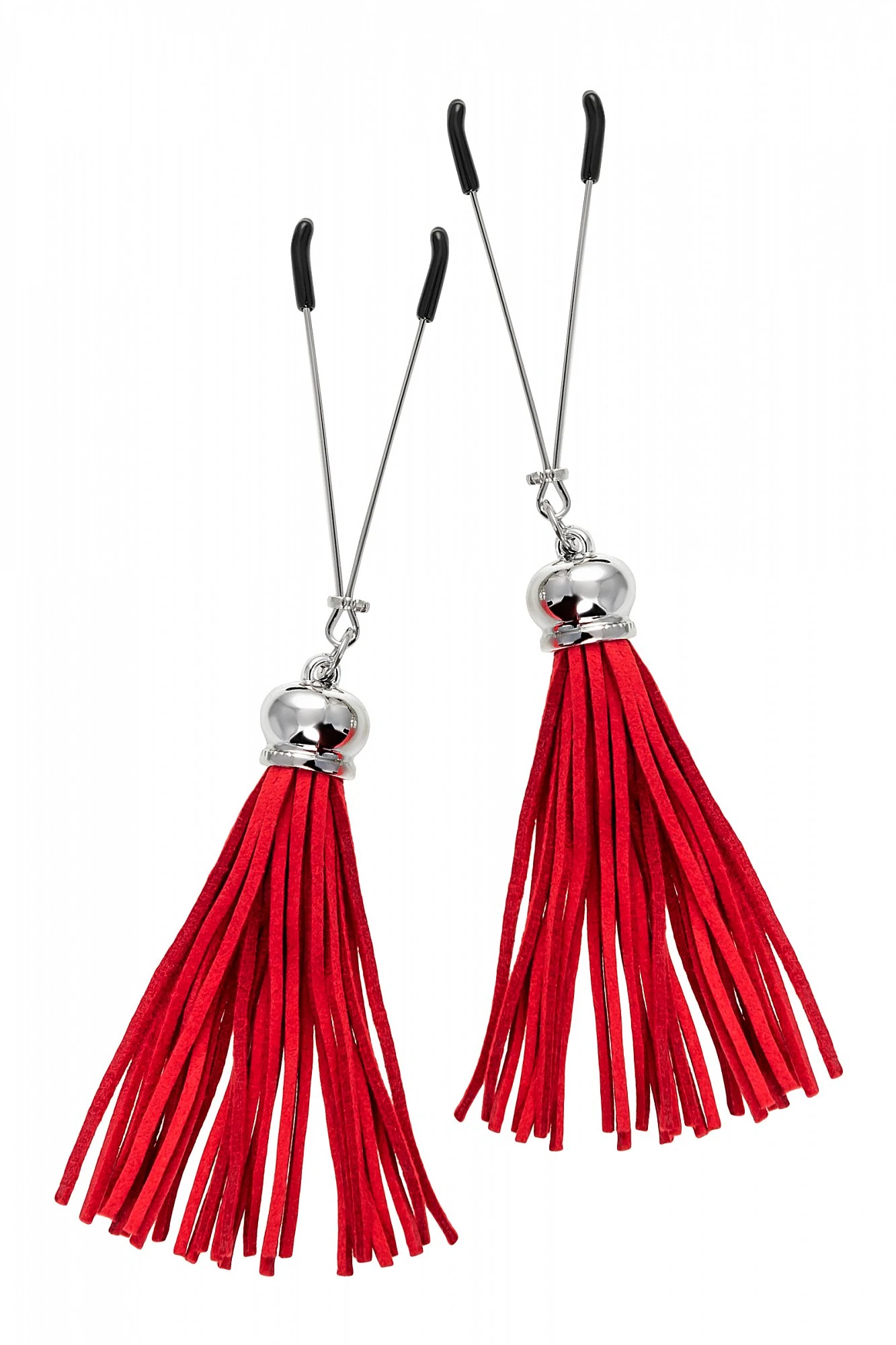 Попробуйте новые, дерзкие ощущения глубокого наслаждения! Зажимы-вилки от Pecado гарантируют смешение ярких чувств от тактильного контакта с нежной кожей сосков. Зажимы выполнены из высококачественных материалов. Металлическая часть компактная, приятная на ощупь. На концах черные резиновые наконечники, для безопасного воздействия на эрогенные зоны. Интенсивность сжатия аксессуара регулируется миниатюрными колечками. В зависимости от личных предпочтений и сценария игры, можно выбрать легкое пощипывание, или сильное сдавливание. Бахрома из натуральной замши, в насыщенном красном цвете , добавляет манящую красоту смелому атрибуту. При каждом соблазнительном покачивании груди, кисточки движутся в пикантном ритме. Также подходит для стимуляции и возбуждении в области половых губ и клитора.Ручная работа. Надежная высококачественная фурнитура. 100% натуральная замша. Размер: общая длина зажимов 14 см, длина кисточки 8,5 см. Не требуют специального ухода.