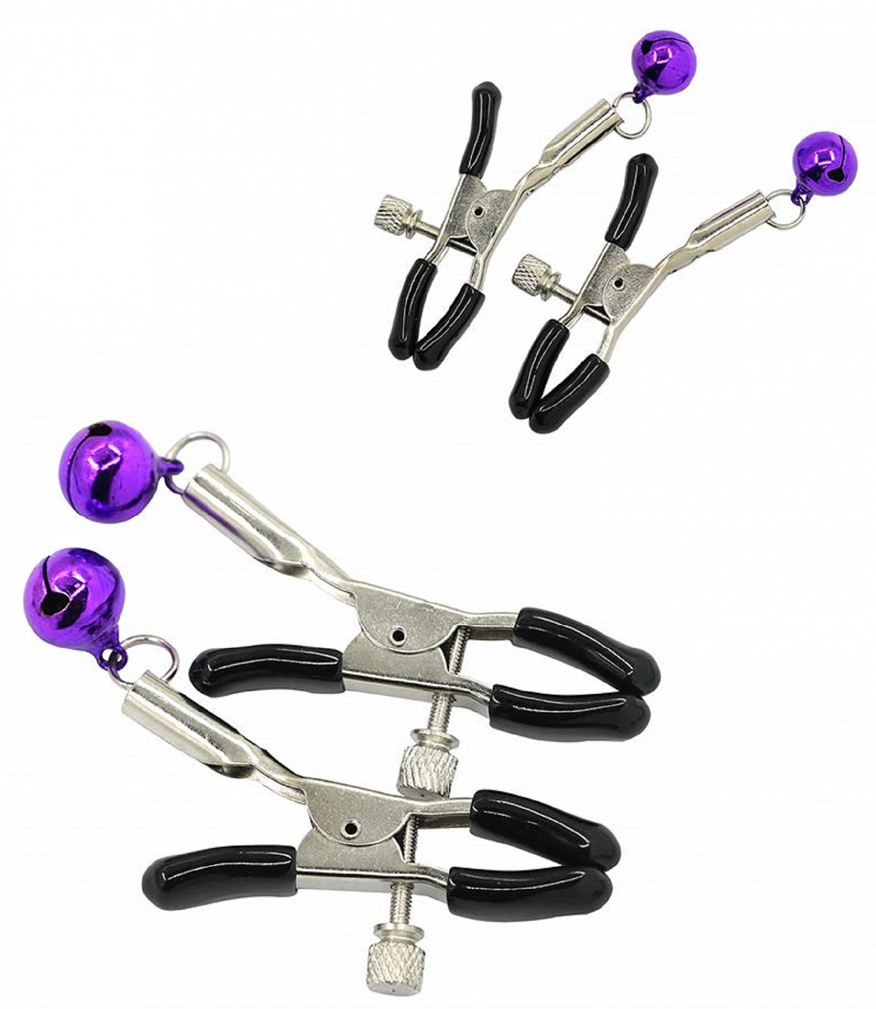 Регулируемые зажимы для сосков с колокольчиками. Прекрасная игрушка для пары. Размер: длина зажима 6 см. Цвет: фиолетовый.