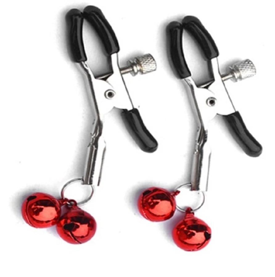 Регулируемые зажимы для сосков с колокольчиками. Прекрасная игрушка для пары. Размер: длина зажима 6 см. Цвет: красный.