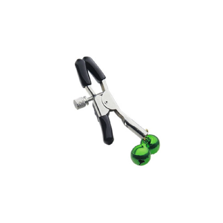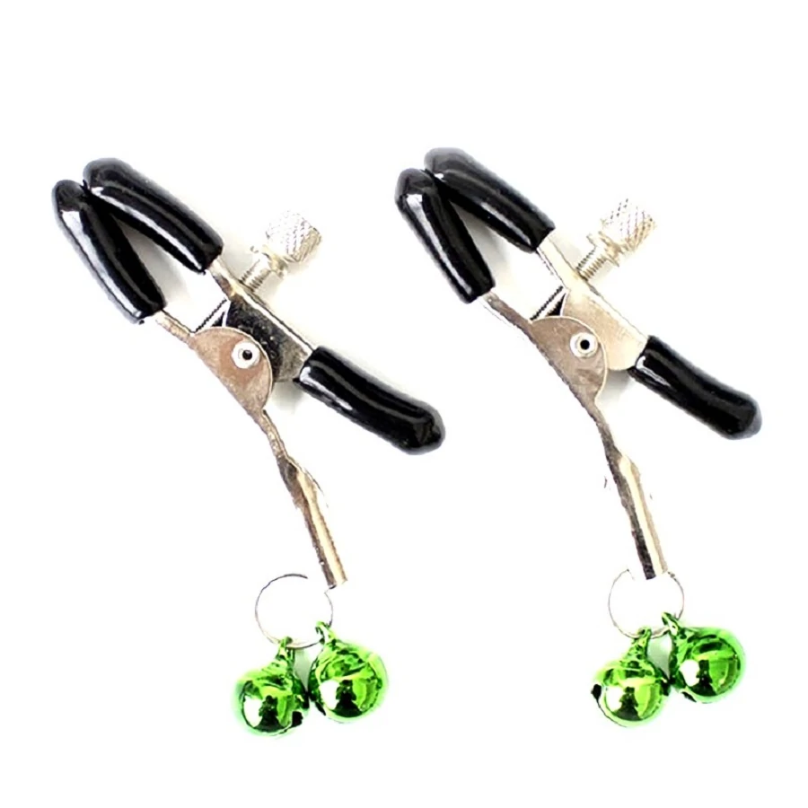 Регулируемые зажимы для сосков с колокольчиками. Прекрасная игрушка для пары. В комплекте 2 шт. Размер: длина зажима 6 см. Цвет: зеленый.
