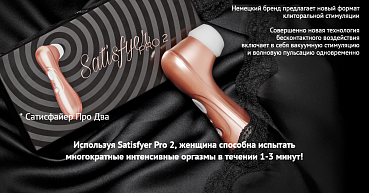 Самая потрясающая игрушка в мире! Путем интенсивной волновой пульсации Satisfyer Pro 2 стимулирует клитор, не прикасаясь к нему, и создает ни с чем не сравнимые ощущения.Бесконтактная стимуляция клитора Стимуляция путем волновой пульсации В комплект входит магнитный зарядный кабель USB Литий-ионный аккумулятор. Удобная очистка Водонепроницаемый – еще больше удовольствия под водой Безопасный для здоровья силикон 11 программ. Также подходит для чувственных игр при принятии ванны. Новый водонепроницаемый Satisfyer Pro 2 дает еще больше удовольствия –